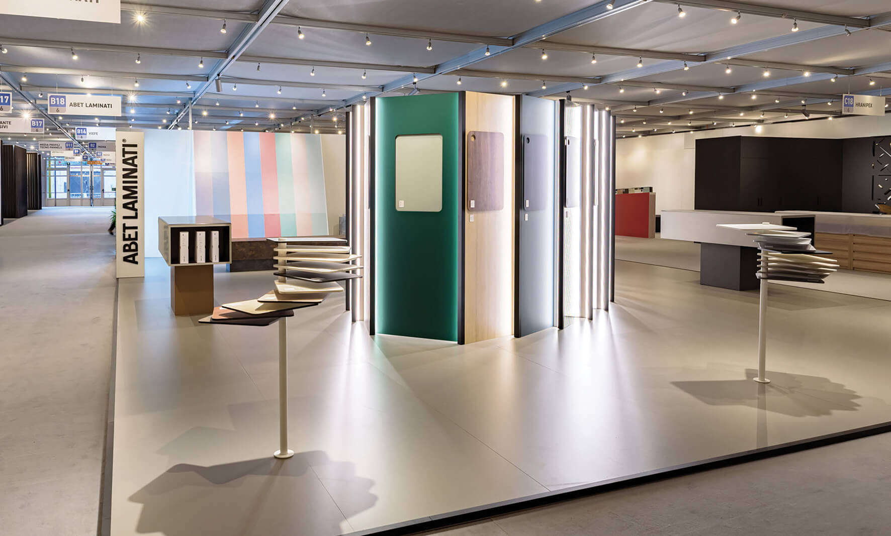 Abet Laminati ha proposto a Sicam Pordenone raffinate novità della collezione Rocks accanto ad una elegante Capsule con cinque inediti decorativi, oltre ad una presentazione esclusiva delle finiture Velwood e Polaris e della collezione Hachure, disegnata da Pierre Charpin.
