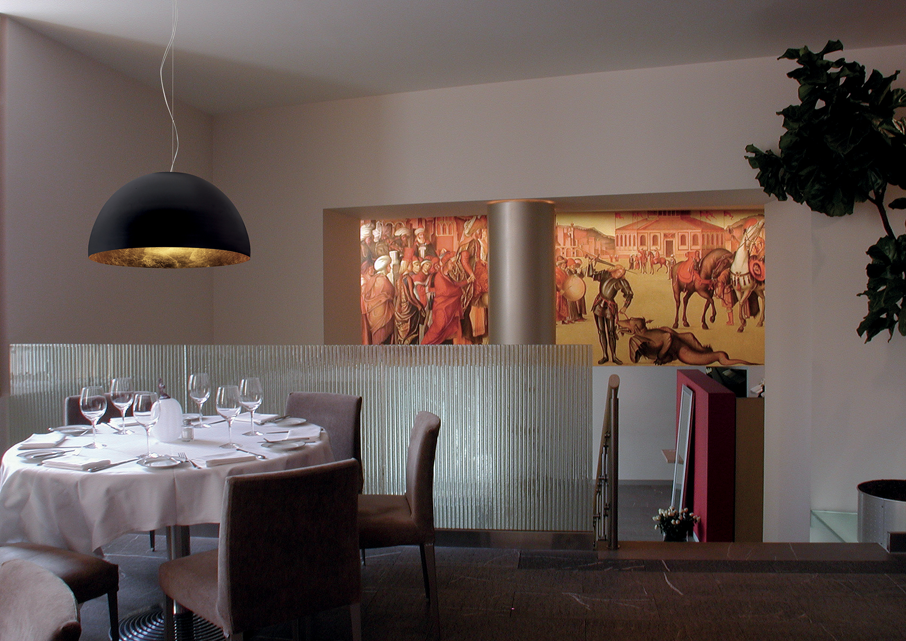 – Superfici lucide come il cristallo, lo specchio e il cromo nero, portano un tocco di lusso e contemporaneità agli spazi.