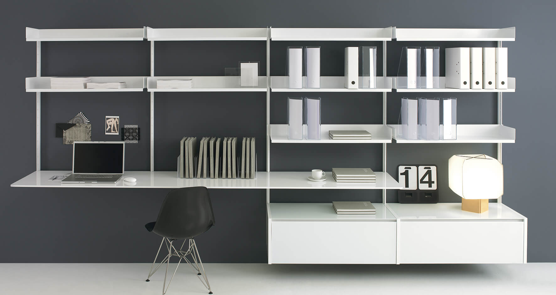 Also designed for home-office solutions, Giano allows you to create a workstation with a desktop and integrated cable ducts for PC cables, contributing to a tidy and efficient space, ideal for work or leisure. A series of dedicated accessories, such as coat rails, complete the system, extending its versatility for wardrobe solutions and retail contexts. Giano is a furnishing system that combines design rigor and contemporary elegance, offering a living and working experience based on a balance of style and functionality.