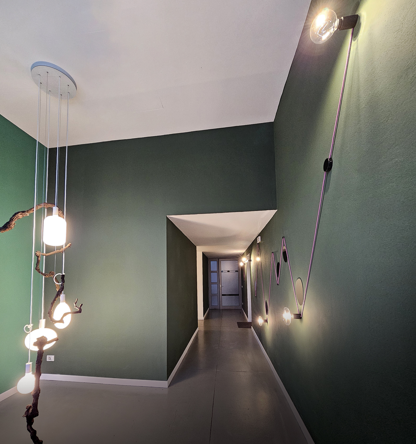 This is a unique project by  Daylight Italia, designed by Architects Francesco Iannone and Serena Tellini, internationally recognized as “The Architects of Light”. Their vision and artistic direction guided every detail of this environment, conceived as a place of research, experimentation, and encounter. The concept draws inspiration from Anselm Kiefer’s monumental work “The Seven Heavenly Palaces” (2004–2015, HangarBicocca, Milan): a dialogue between matter, light, and spirituality, reflected here in a contemporary dimension tailored to the world of lighting design.