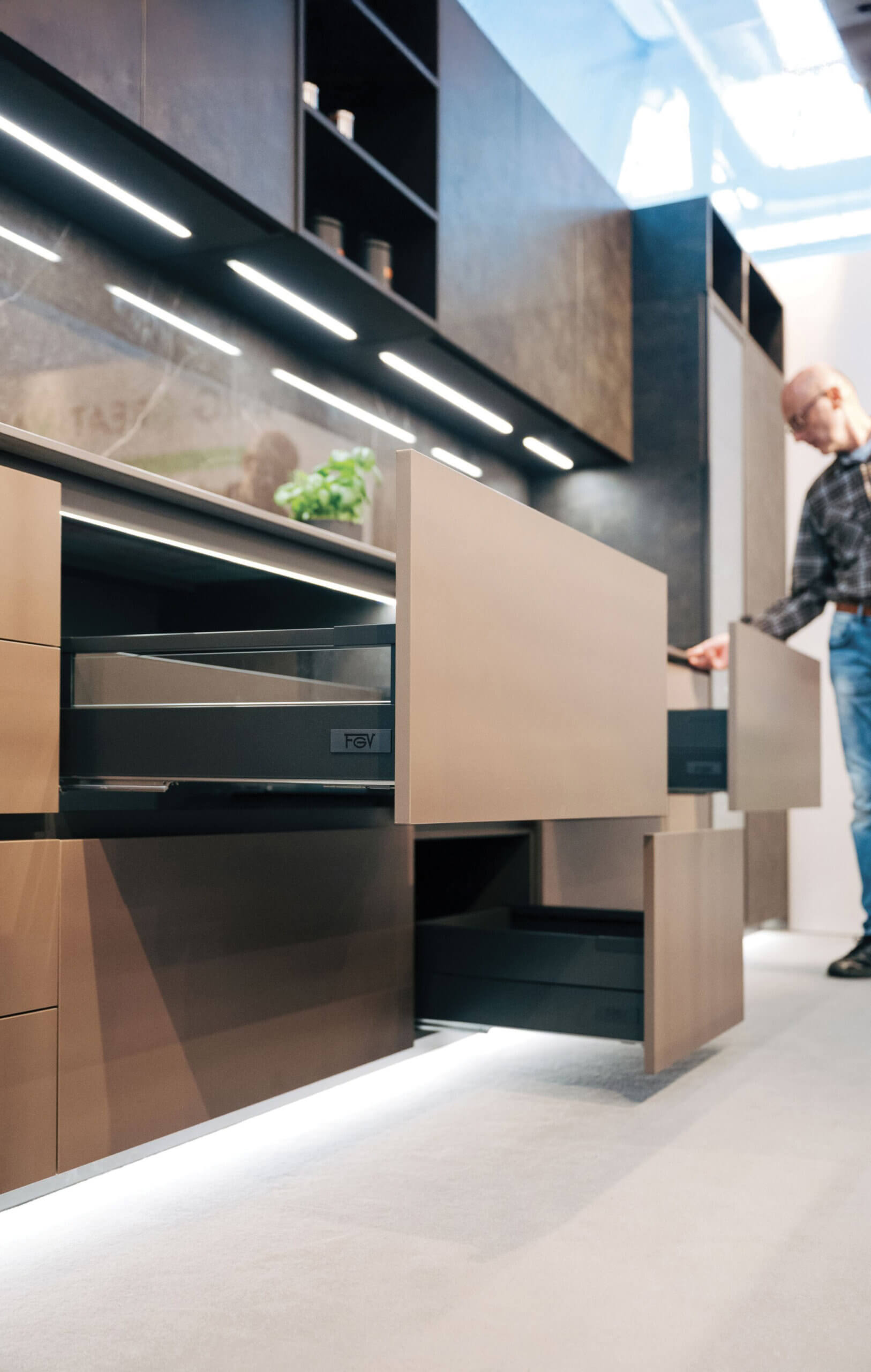 Following its exclusive presentation at interzum, FGV returns to Sicam with a product that perfectly embodies the balance between Italian style and German quality, hallmarks of the historic company from Brianza, now an integral part of the Hettich Network: the Cervino drawer. Designed to meet the functional demands and everyday needs of the contemporary kitchen, this drawer stands out for its linear, minimalist structure and squared side panels, evocative of the slopes of Mount Cervino, from which it takes its name. The simple form and essential style allow seamless integration into any furnishing system, enhancing visual order and formal clarity. The design is conceived to maximise usable internal space while minimising structural bulk.