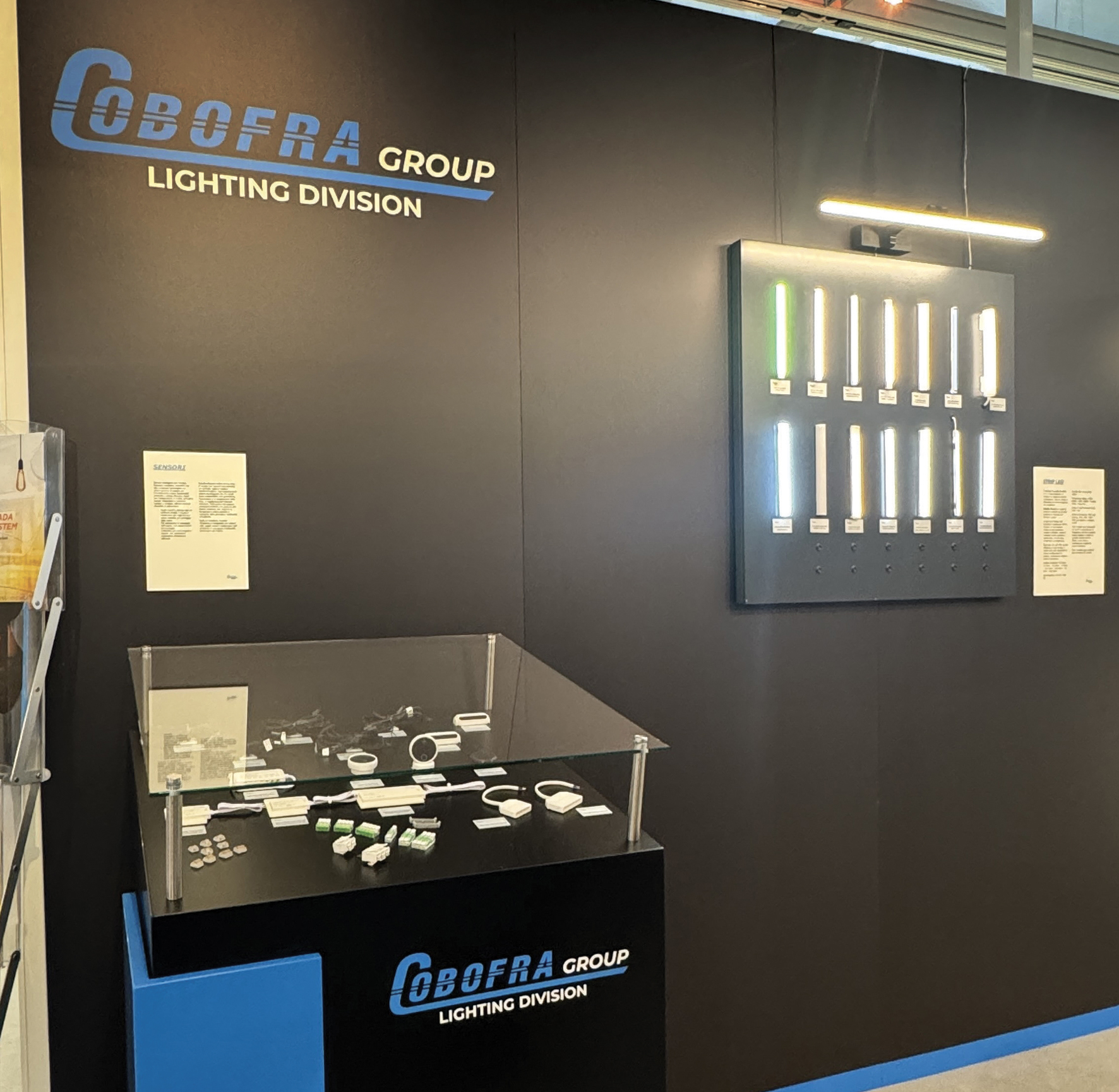 The stand has also been designed to best present the functionality of Giada System controls through display cases and panels, also in line with the new sensor products developed by Cobofra Group for the cabinet sector. That is, furniture, wall units, mirrors, wardrobes and showcases, without forgetting lighting accessories, such as cables, LED strips, drivers, profiles and wiring.