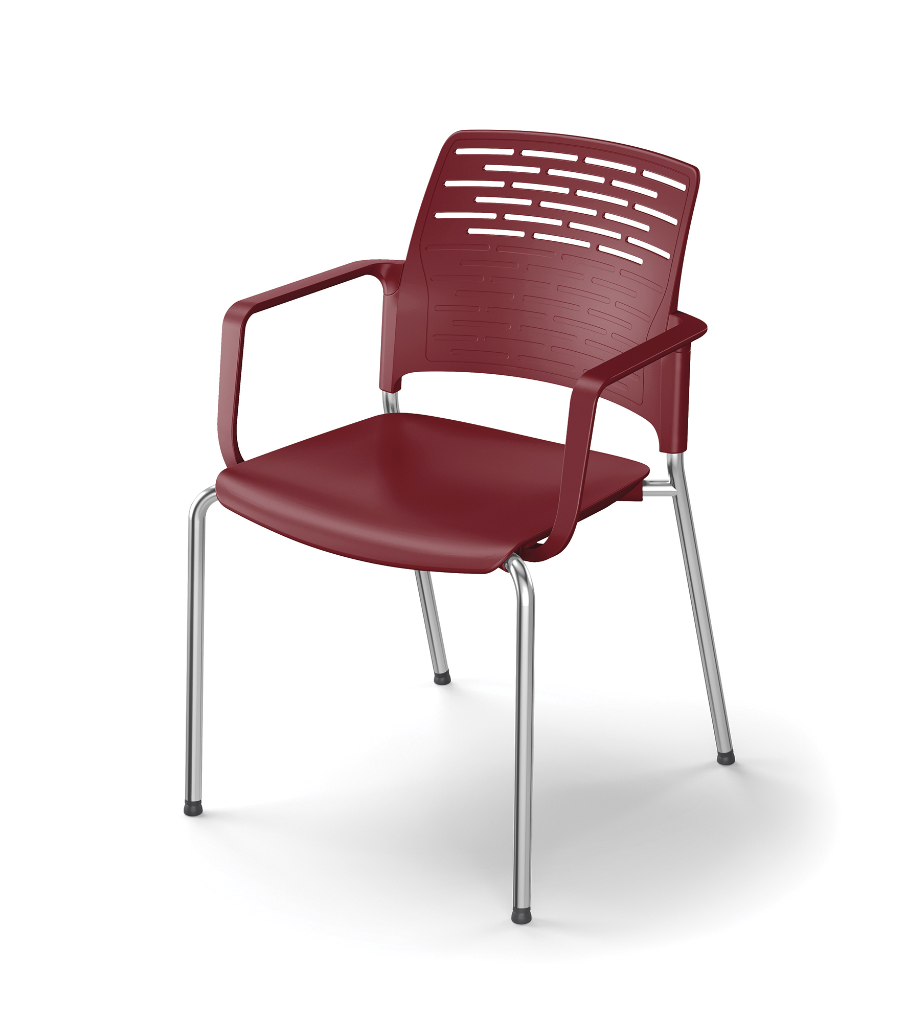 The seat can be configured in two ways: by leaving the plastic in sight, for maximum practicality (durable and easily cleaned), or upholstering it, for superior comfort and an added touch of elegance. Liberty can also be equipped with armrests and a small writing tablet, for a configuration which is suitable for educational settings and schools. Even the Liberty frame is designed for freedom of choice, with 4-legs metal frame, 4-legs frame on castors, cantilever frames and bench, swivel and stool options. The 4-leg metal frame version is enriched with an innovative detail: the articulated and self-levelling Stilla foot (patented by IVARS in 2025). Built in recyclable plastic and inclinable up to 15°, it comes in a choice of two bases (with a plastic or felt pad) for maximum stability on any surface. Different plastic colours are available to adapt to places with different purposes, and harmonise with their style. The frames come in painted finishes that are on-tone with the plastic, or in a chrome finish, for general stylistic harmony.
