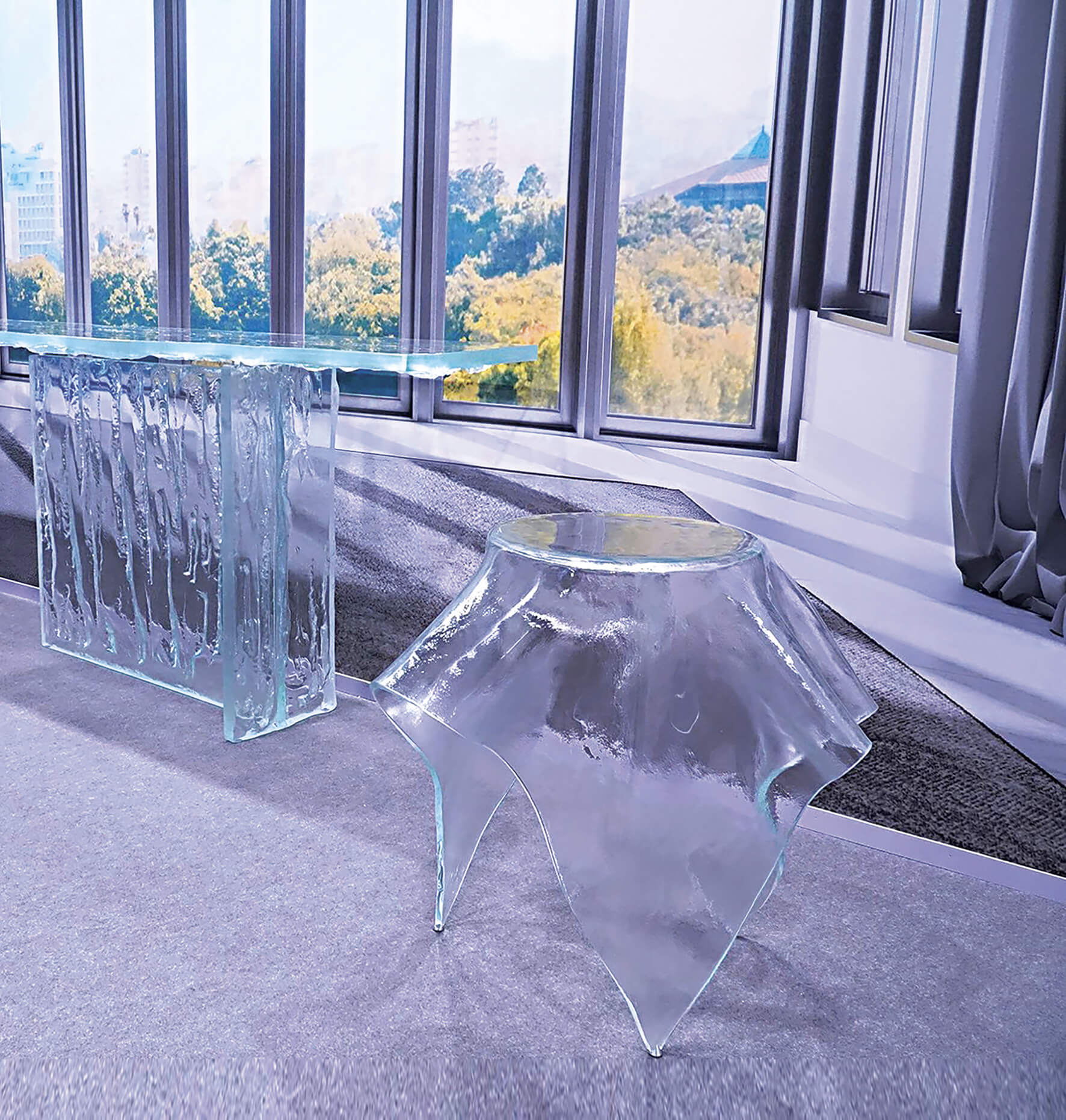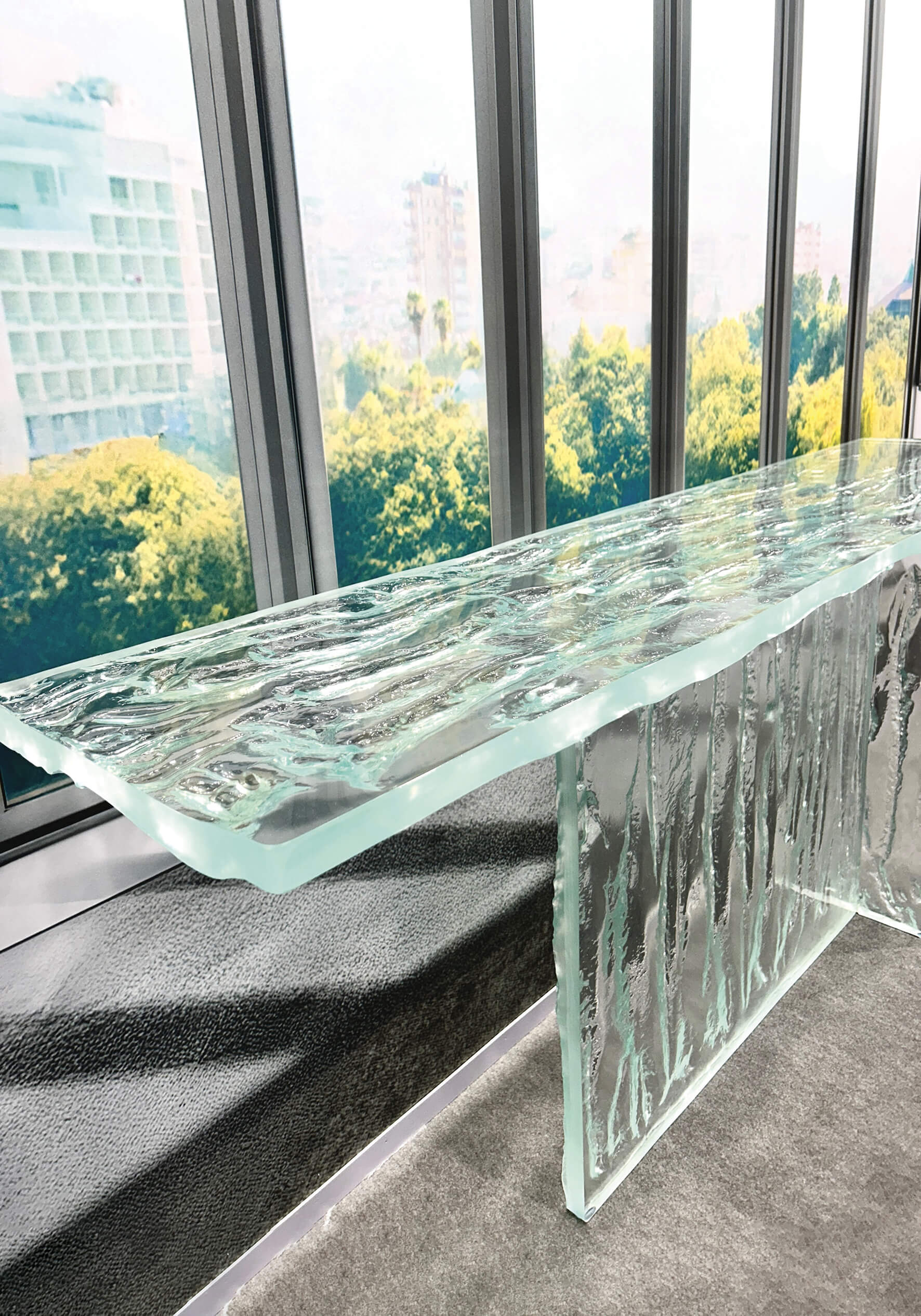 In digital printing applications, however, its neutral transparency acts as the perfect canvas for vivid and faithful image reproduction, with sharp contrasts and intense colours. Compatibility with the main processing techniques – cutting, grinding, tempering, layering, glazing and decoration – completes the picture of a material designed to accompany the creative freedom of design professionals.
