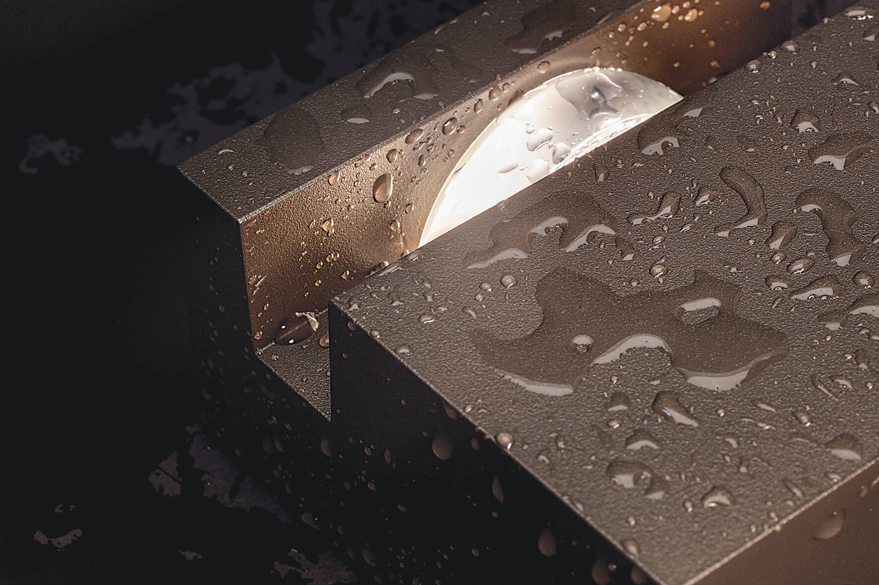 The body is made of high-quality aluminium and comes with 5 meters of pre-wired cable. The diffuser is made of 15 mm transparent glass in the surface-mounted version, or polycarbonate in the recessed version. The silicone gaskets with the Aquastop system ensure high protection against water and humidity, with an IP67 protection rating for the recessed version and an IP66 rating for the surface-mounted version.