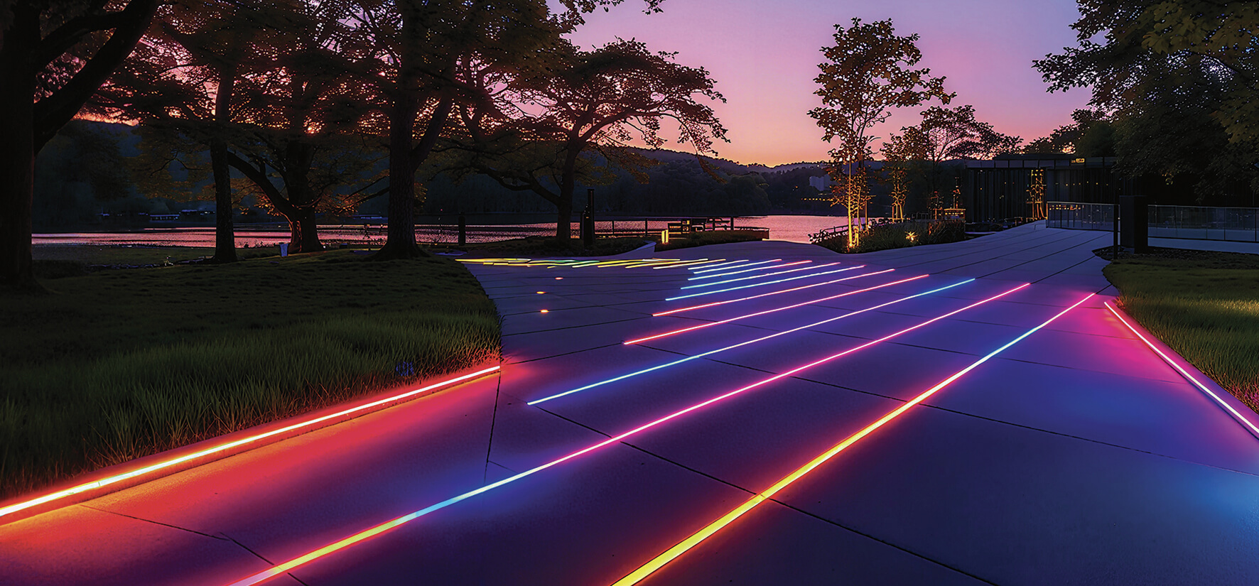 The neon LED strips of the AGS1320 series dedicated to the pedestrians’ passage are featured by a remarkable resistance to atmospheric agents as well as cleaning tools and chemical products, thus ensuring a long life of the finished product, also thanks to the IP68, IP69K and IK10 certifications. The up to 10m length also allows for meeting long walkway projects, while full compatibility with aluminium and TPU profiles allows for reaching a static load of up to 5 kN, thus offering excellent mechanical resistance to abrasion and anti-slip features.
