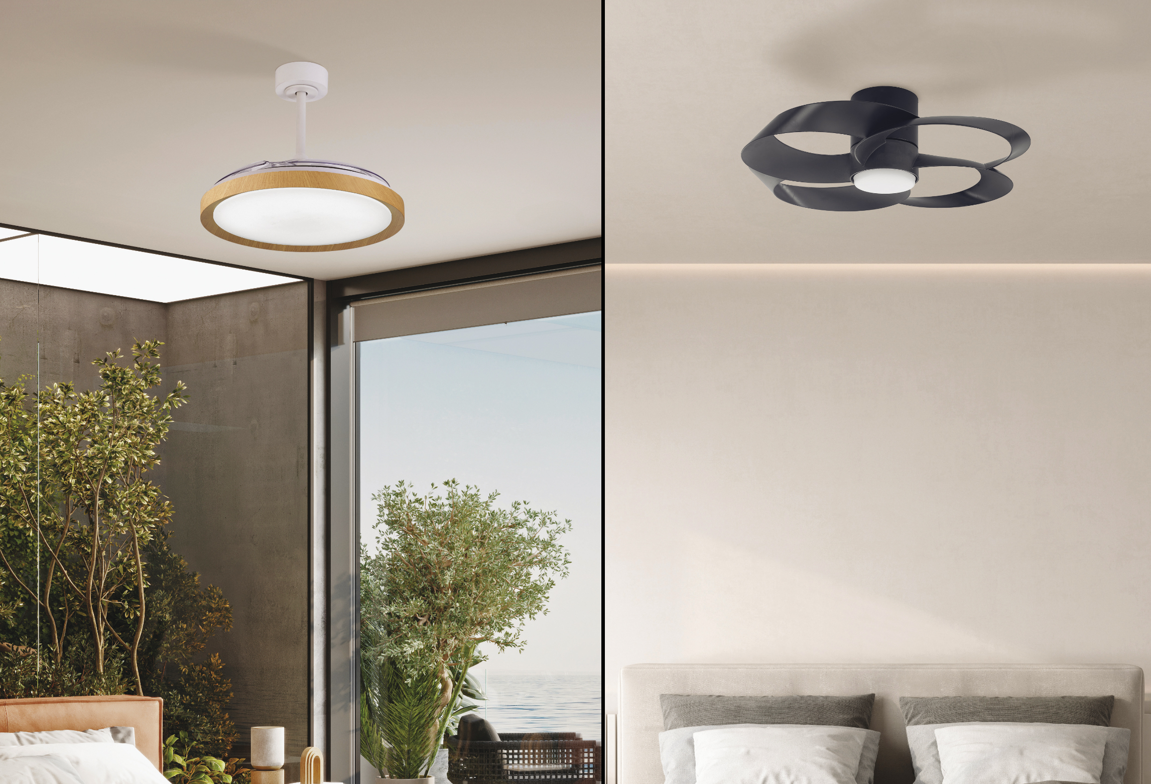 Ceiling fans with integrated lights are increasingly sophisticated, silent, and equipped with remote controls that, in addition to adjusting the operating speed, can also adjust the temperature of the emitted light. A leading company for these devices is Mantra Iluminación of Valencia: with many products in the catalogue, it presents two flagship DC fans for greater efficiency and energy savings.