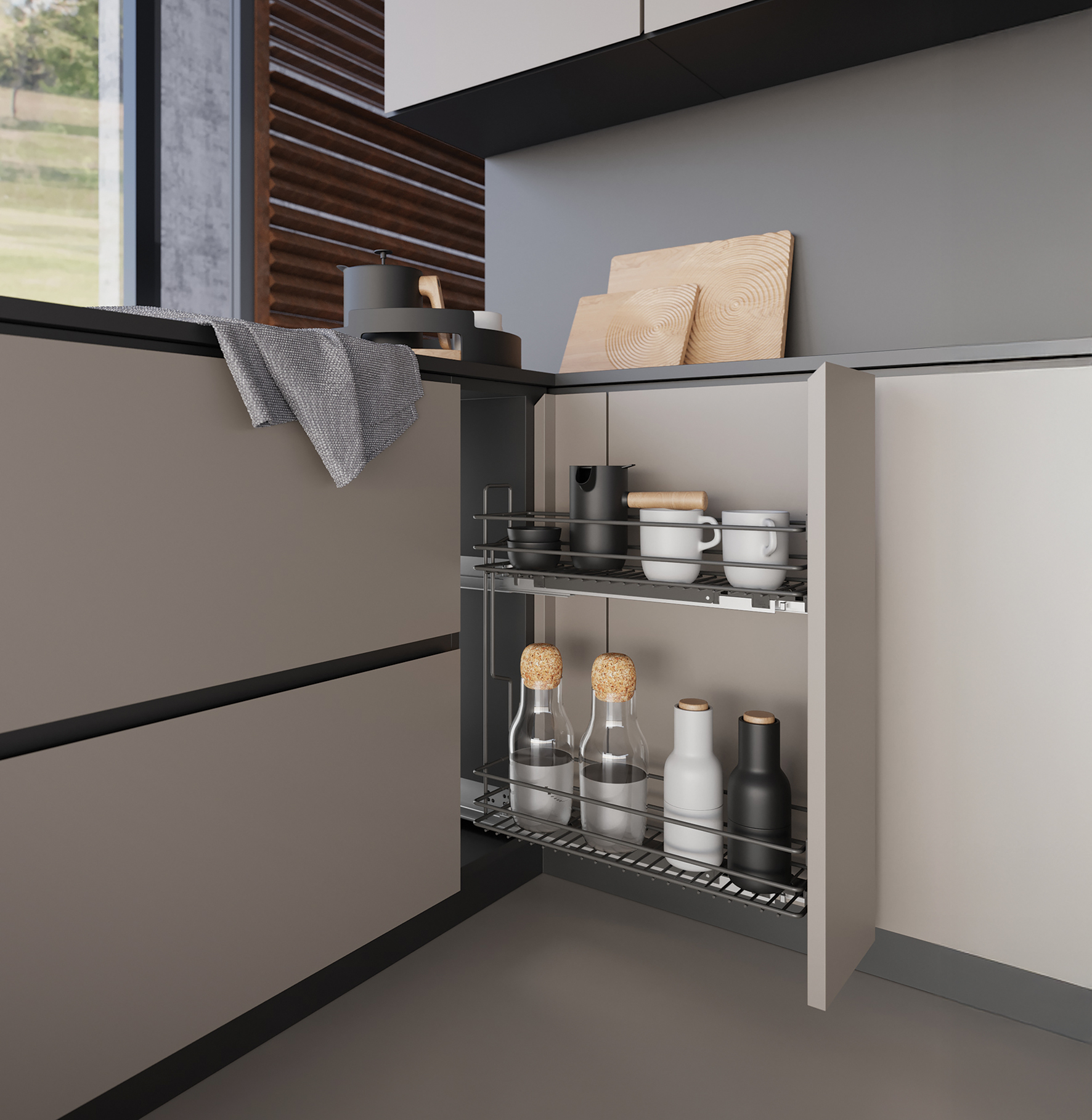 Gli articoli dedicati al bagno riguardano portabiancheria, porta scarpe e sacchi trapuntati previsti per i diversi moduli di mobili, nella duplice versione sia con struttura in lamiera verniciata sia con struttura in filo metallico verniciato e con sistemi di movimentazione a chiusura ammortizzata di comprovata qualità ed efficacia come Grass e Salice.