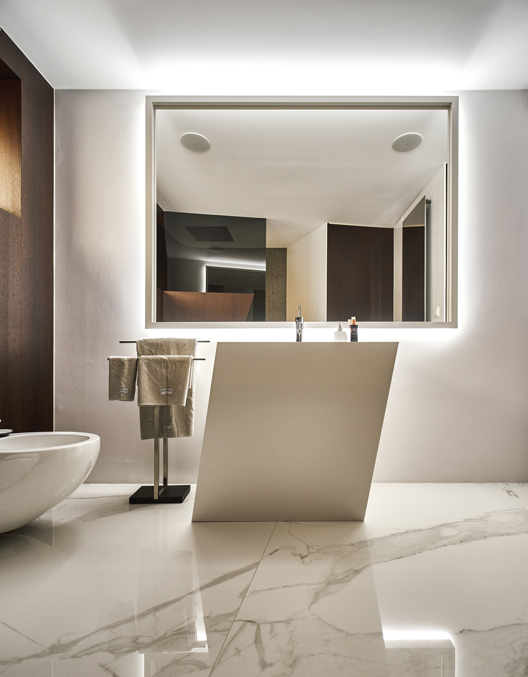 In un ambiente come la stanza da bagno, gli standard d’igiene sono di primaria importanza: la finitura completamente uniforme e priva di giunti visibili di HIMACS previene, infatti, accumulo di sporco e proliferazione di muffe, virus e batteri. La continuità della superficie non solo semplifica le operazioni di pulizia quotidiana, anche con detergenti particolarmente aggressivi, ma contribuisce anche a creare un ambiente più sicuro e di facile manutenzione nel tempo.