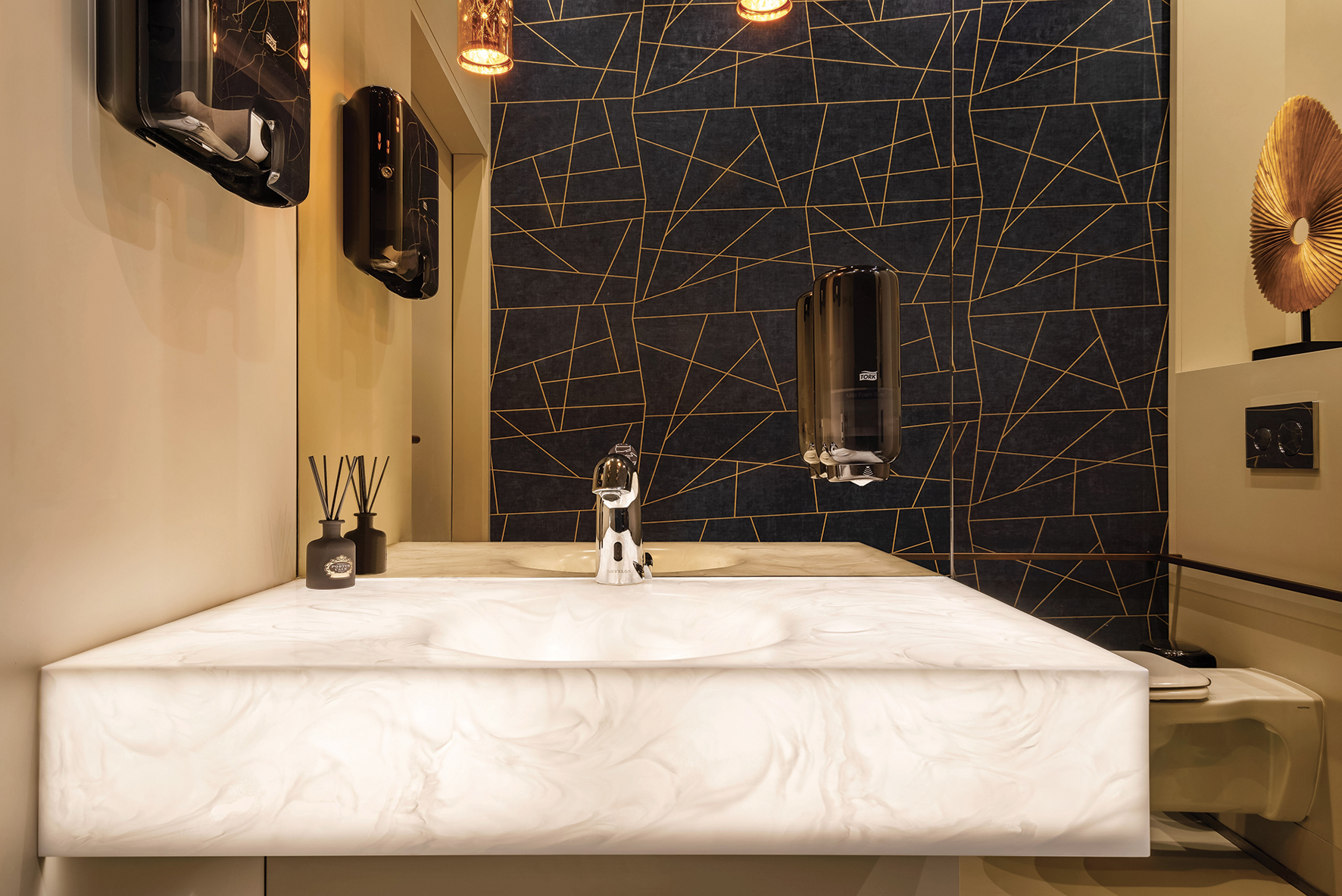 In questo scenario, HIMACS rappresenta il materiale perfetto che risponde ai più severi standard igienici e dà forma a progetti “emozionali” e personalizzati. La sua duttilità, anche tramite fresatura CNC, permette di creare superfici scolpite, texture tridimensionali e dettagli unici che arricchiscono l’esperienza visiva e tattile.